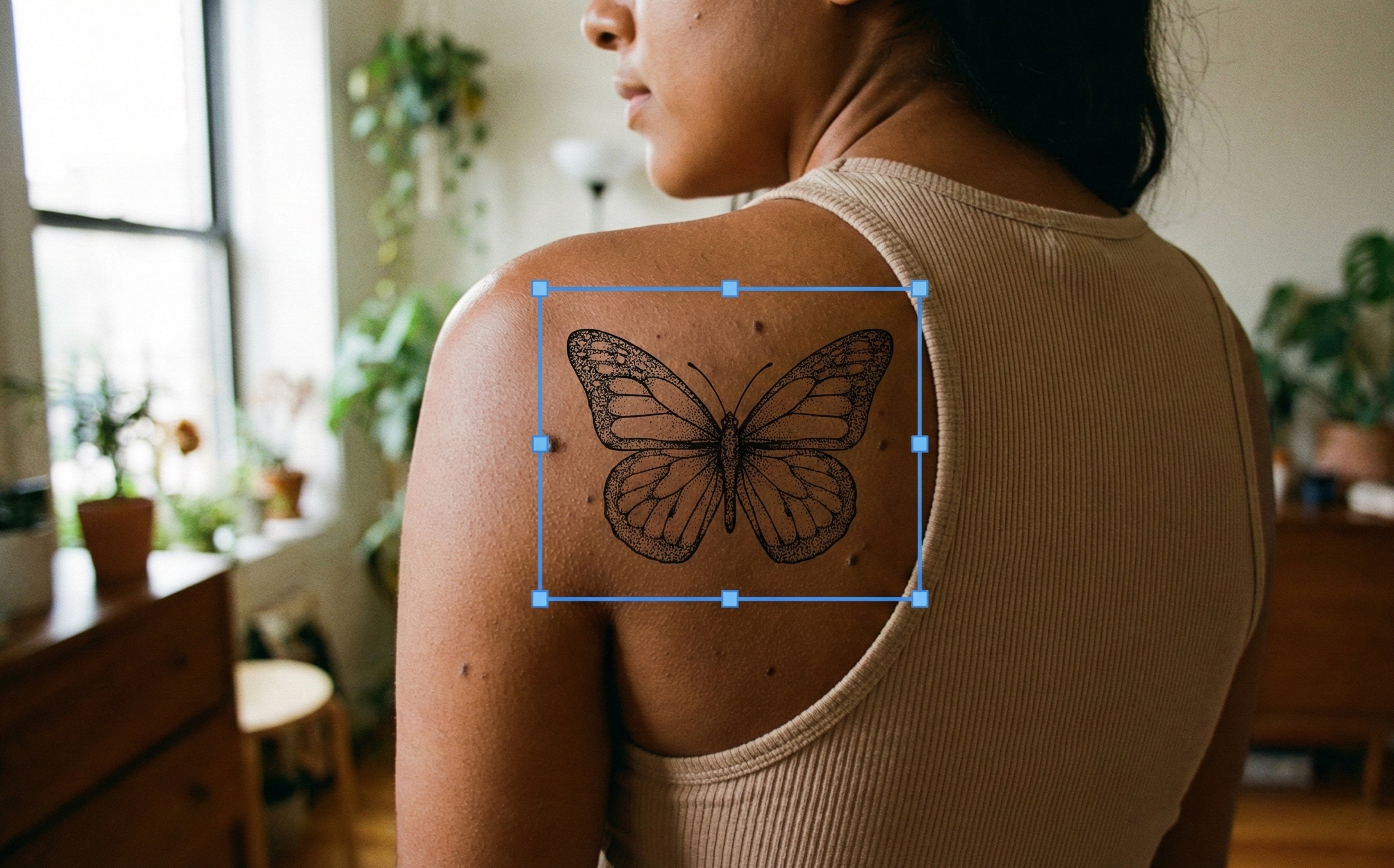 Arm? Shoulder? Back? Try different placements until it feels perfect. Drag, resize, rotate.